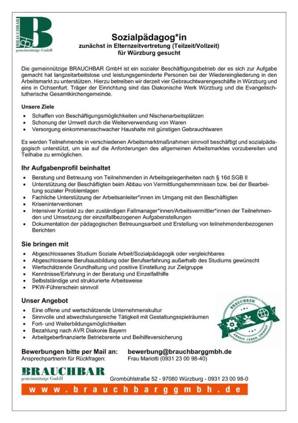 Aktion 1 + 1 - mit Arbeitslosen teilen
